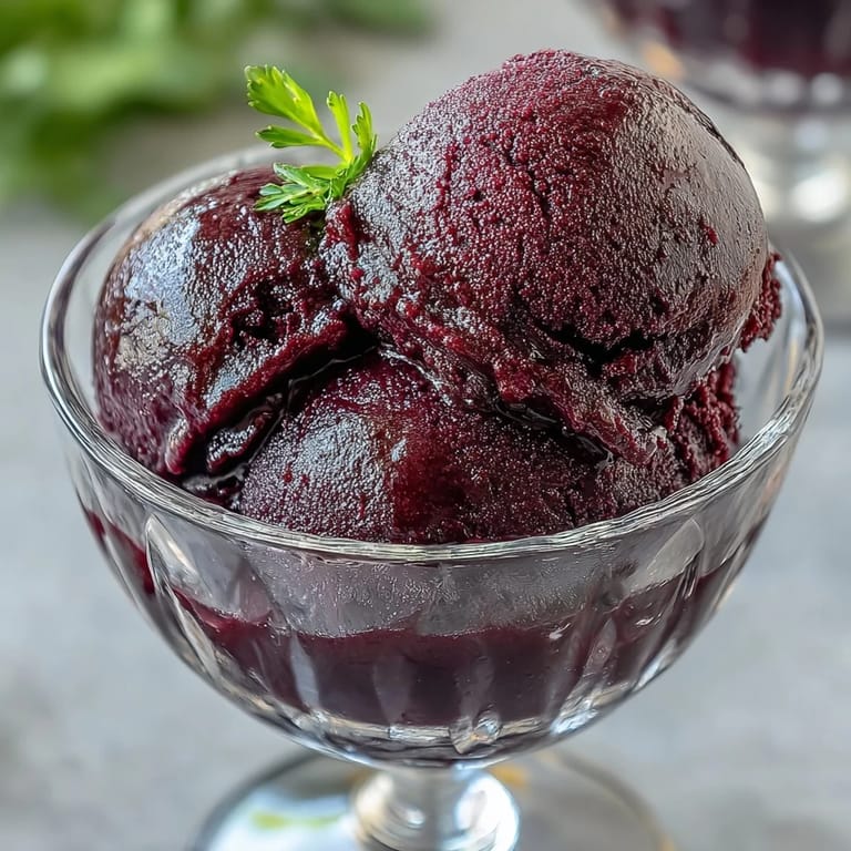 Save My kitchen smelled like a farmer's market that afternoon when I discovered black currants at the local stand, their dark purple skin almost black under the fluorescent lights. The vendor mentioned they were perfect for sorbet, and something about the tartness she described made me want to capture that brightness in frozen form. By evening, I had my first batch churning, and watching it transform from liquid to velvet in the machine felt like a small kitchen victory. That moment taught me how a single fruit could redefine what I thought dessert could be.
