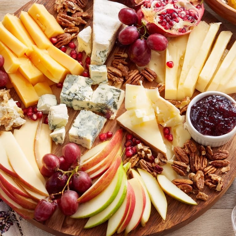 - Distribute fresh fruits in colorful clusters around the board, fanning out apple and pear slices for visual appeal.