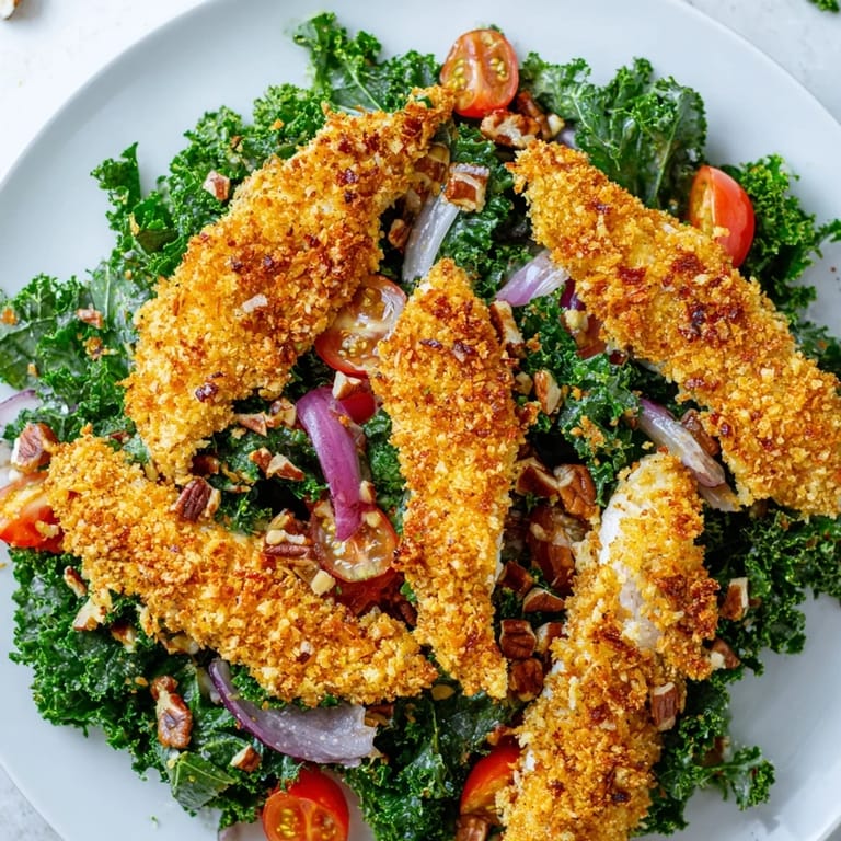 Save Last spring, I was craving something substantial but not heavy, something that felt like comfort without the guilt. I threw together this crispy chicken kale salad on a whim, using leftover breadcrumbs and a bunch of kale that had been sitting in my fridge for two days. The maple-Dijon dressing was a happy accident, born from not having any lemon juice on hand. That first bite, with the warm, crunchy chicken against the slightly bitter, tender kale, made me realize I'd stumbled onto something special.