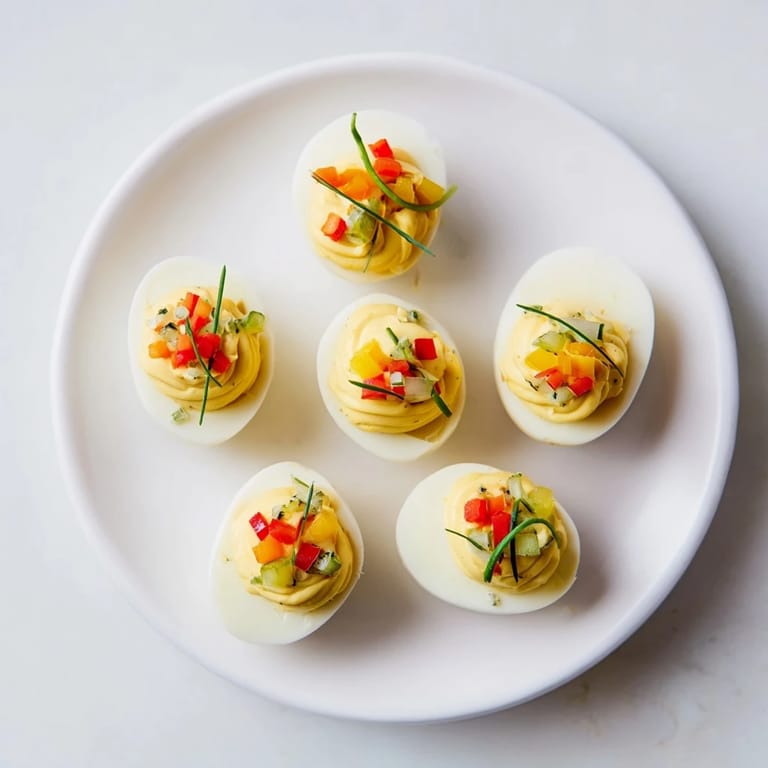 - Decorations: 2 tablespoons finely diced red bell pepper, 2 tablespoons finely diced green bell pepper, 1 tablespoon finely chopped chives or green onions, 1 tablespoon finely grated carrot, 2 tablespoons finely diced pickles or cornichons (optional), 6 thin chive stems or parsley stems (for ornament hangers)