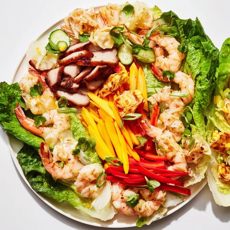 - Layer BBQ pork, shrimp, and potstickers along the lettuce to create the dragon's scales.