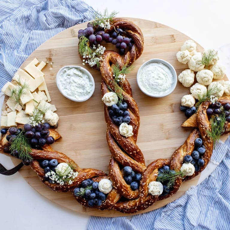 This board is a foundation, not a prison. I've made it with completely different cheeses depending on what the market had that day, swapped stone fruits for grapes when it was autumn, and once even added roasted nuts when I had them on hand. The nautical theme stays intact because the pretzel anchor and blue-and-white palette are your anchors—pun absolutely intended. If you want to lean into the seaside theme even more, look for blue corn tortilla chips, blue potatoes, or edible flowers in ocean shades. Every variation I've tried has been wonderful.