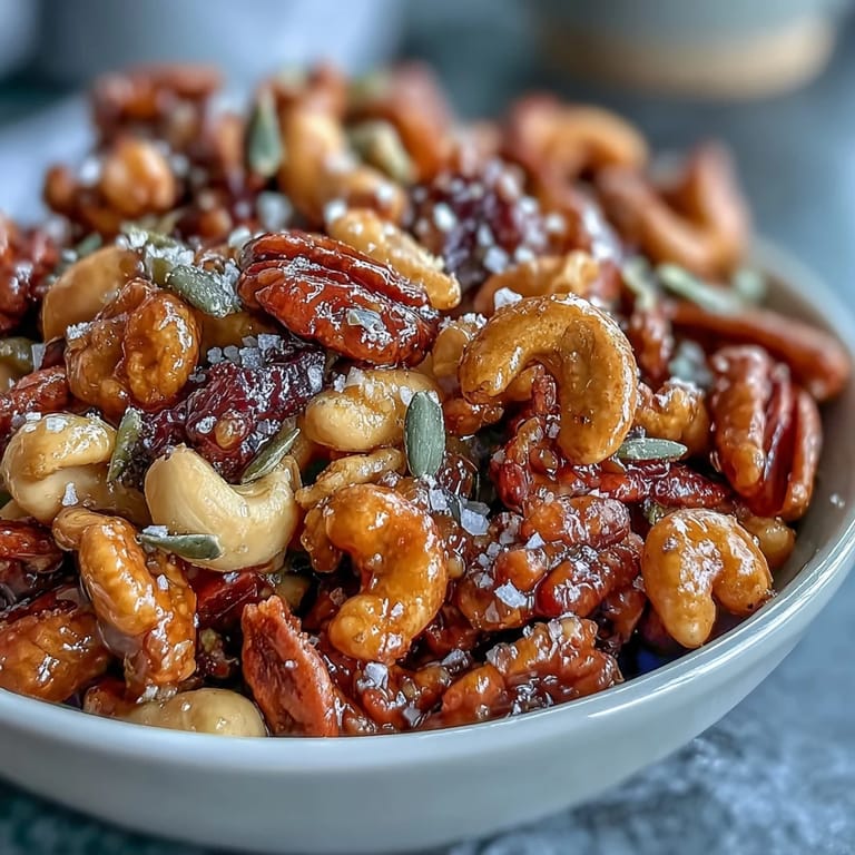 Save My neighbor showed up at my door one Saturday afternoon with a small handful of this snack mix, still warm from her oven, and I couldn't stop eating it straight from my palm. The honey had caramelized just enough to make everything stick together in the most satisfying way, and that smoky paprika kept surprising my taste buds with each bite. She refused to share the recipe at first, claiming it was too simple to bother writing down, but after I made it myself that evening, I understood why she guarded it so carefully—some things taste better when they feel like a small discovery.