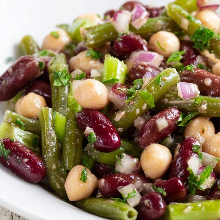 Save The first time I encountered three-bean salad was at a neighborhood block party where Mrs. Henderson brought this enormous glass bowl that caught the sunlight just right. I must have gone back for thirds, fascinated by how something so simple could taste so incredibly refreshing. After shamelessly asking for the recipe, I learned it was her mother's version with a slightly sweet vinaigrette that cuts through the beans' earthiness. Now it's my go-to contribution for summer gatherings, and I still smile watching people discover it for the first time.