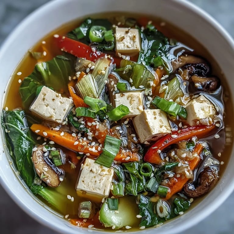 Save There was a Wednesday afternoon when I stood in my kitchen with nothing but half a block of tofu, a few wilted greens, and a carrot that had seen better days. I almost ordered takeout, but instead I remembered a soup my friend made once after a long day, something warm and gentle that didn't ask too much of you. That soup became this one, and now it's what I make when I need to feel grounded without spending an hour at the stove. It smells like ginger hitting hot oil and tastes like a hug in a bowl.