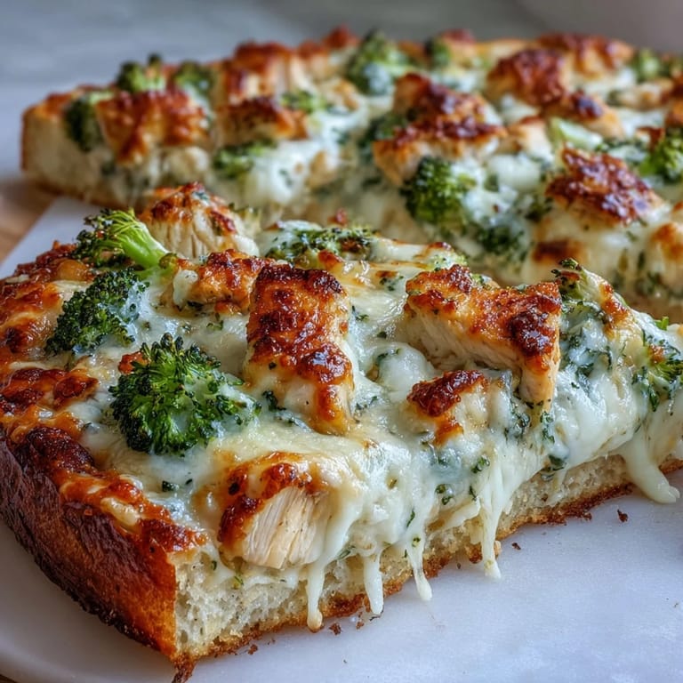 Save My neighbor stopped by one Tuesday evening with fresh broccoli from her garden, and I found myself staring at it, wondering what to do besides roast it into submission. That's when the idea hit: what if I treated it like a pizza topping instead of a side dish? I'd been making the same pepperoni pizza for years, and something about combining creamy garlic sauce with chicken and those tender green florets felt like discovering a secret menu item at a restaurant I thought I knew. The first batch came out of the oven bubbling and golden, and I haven't looked back since.